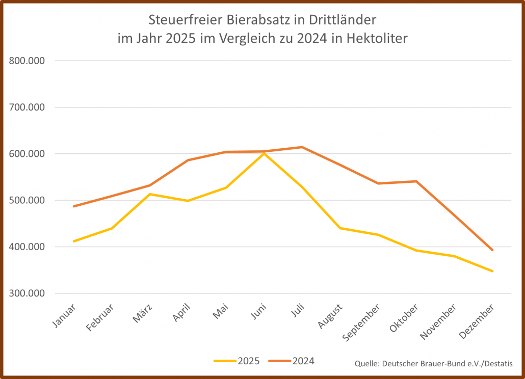 Die deutschen Brauer nutzen von Jahr zu Jahr immer stärker die attraktiven Vertriebschancen auf den internationalen Märkten. Heute werden deutsche Biere in mehr als 160 Ländern der Erde genossen. Und deutsche Biere sind der Tradition und den hohen Qualitätsstandards verpflichtet unverändert keine Lizenzprodukte produziert in den Absatzgebieten selbst. Es sind weiterhin wirkliche Exportbiere – hergestellt in den Braukesseln deutscher Brauereien zwischen Nordsee und Alpen.