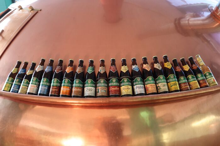 Pils, Helles, Export, Märzen, Landbier, Kellerbier, Hefeweizen -Hell, -Dunkel, Kristallweizen, Radler (Shandy), Alkoholfreie Biere, Malztrunk, Apfelschorle, Bockbier, Saison- und Spezialbiere (Dinkel, Blond)